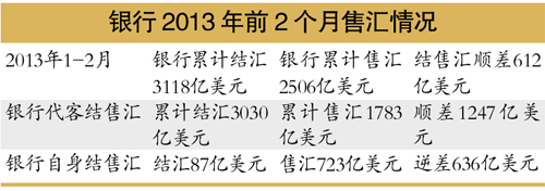 國(guó)家外匯管理局25日公布的統(tǒng)計(jì)數(shù)據(jù)顯示,2013年2月我國(guó)銀行代客結(jié)匯1212億美元,售匯890億美元,結(jié)售匯順差322億美元。這是我國(guó)自去年9月份以來(lái)銀行代客結(jié)售匯連續(xù)第六個(gè)月出現(xiàn)順差。