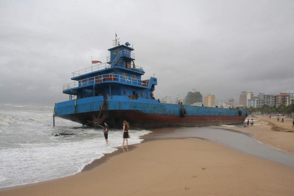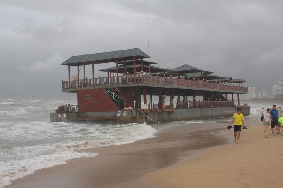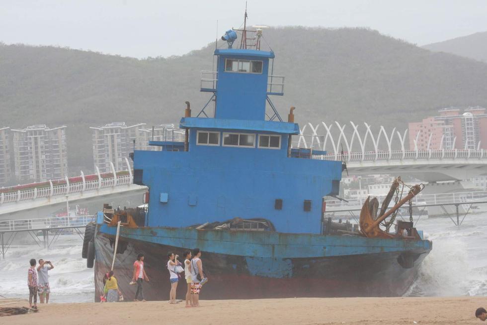 海南3艘大船被臺(tái)風(fēng)“鯨魚”刮上沙灘