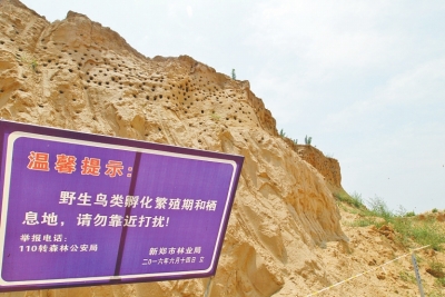 為保護(hù)鳥兒安全度過繁育期,河南省森林公安局、河南省野生鳥類觀察學(xué)會(huì)在土堆前立了一塊警示牌,上書“鳥類棲息地,禁止靠近”,呼吁社會(huì)善待候鳥。而新鄭市林業(yè)局林政科有關(guān)人員在接受記者采訪時(shí)亦稱:“我們只要一接到群眾舉報(bào),立即會(huì)同公安機(jī)關(guān),盡快把這些燕子集中育雛地保護(hù)起來,除告知施工單位停工外,還在一定區(qū)域內(nèi)拉起警戒線,禁止無關(guān)人員驚擾燕子孵卵育雛,今年新鄭市總共有三處燕子育雛地被集中保護(hù),新鄭市保護(hù)崖沙燕的善舉曾得到過中央級(jí)媒體的表揚(yáng),接下來我們會(huì)再接再厲,爭(zhēng)取做得更好。”