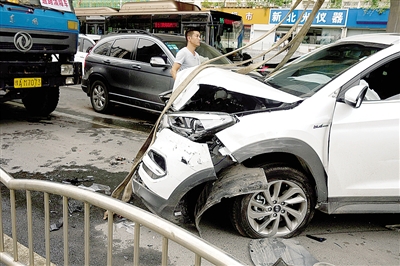 目擊者范先生稱:“當時由南向北是綠燈,由東向西是紅燈,白色轎車在華山路上由南向北直行,路過我身邊時,轎車前有一老太太手里提著東西也在由南向北走,轎車速度有點兒快,我看到司機在車內亂晃腦袋,看樣子司機像是突然犯病,行為很不正常,車子像瘋了一樣向東北角開去,還有可大的剎車聲?!?/p>
