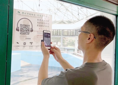 進(jìn)入動(dòng)物園后,還能自助游園。通過覆蓋全動(dòng)物園的免費(fèi)WIFI,掃描二維碼導(dǎo)游牌,語音講解就開始了。語音導(dǎo)游系統(tǒng)包括25個(gè)場館,每個(gè)場館的圖片和語音相互搭配,站在場館外的“門外漢”即可了解場館內(nèi)“洞天”。如一次沒有聽清楚,沒關(guān)系,可重復(fù)聽取講解。