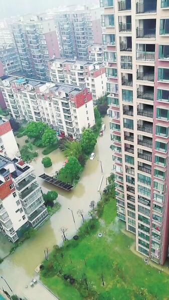 街道積水到膝蓋,小區(qū)內劃船出行