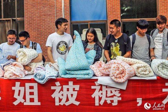 2015年05月31日,北京,清華大學(xué)生物科技學(xué)院大三學(xué)生小磊(左一)花800元買(mǎi)下了兩套學(xué)姐的被子。清華大學(xué)生物科技學(xué)院的大三學(xué)生小磊說(shuō),他在閑魚(yú)app上花了近800元拍下了兩床學(xué)姐的舊被子,就旁人看來(lái)這簡(jiǎn)直就是“天價(jià)”,可小磊卻稱(chēng) “不貴!學(xué)姐馬上要回韓國(guó)了,我仰慕她三年,留樣?xùn)|西給自己作個(gè)念想也好”,小磊說(shuō)。