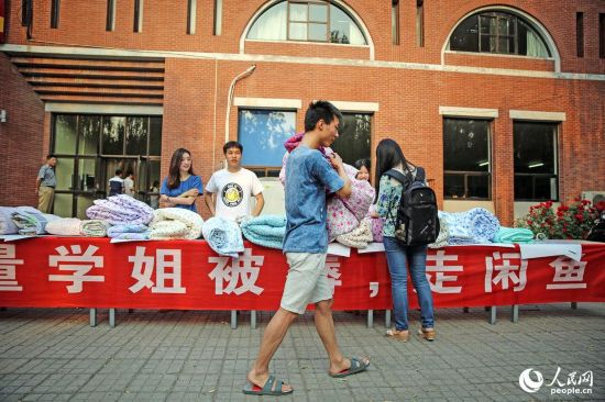 2015年05月31日,北京,清華大學(xué),今年即將畢業(yè)回國(guó)的韓國(guó)女生李惠林正在參與買(mǎi)被子。高價(jià)被子的主人是清華大學(xué)工藝美術(shù)系的一名留學(xué)生李惠林,現(xiàn)年大四的她畢業(yè)后將要回韓國(guó),于是將大部分不便攜帶的生活物品都賣(mài)給了龍一, 除了被子,還有書(shū)和化妝品。