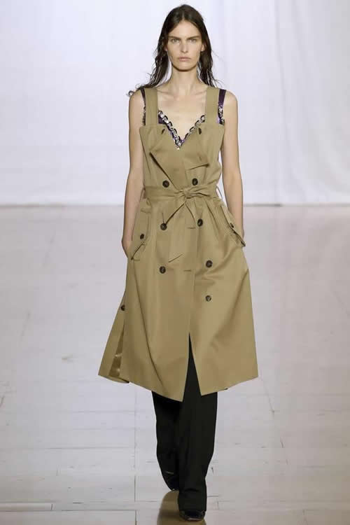 風衣面料的吊帶長袍新鮮感十足,穿上它,你可以是花園里澆花的女主人,脫下之后,寶石鑲邊的胸衣一解沉悶,當然,闊腿褲得是及地的。