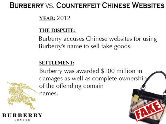 結(jié)果:Burberry獲得1億美元賠償,并獲得一個(gè)永久性授予,那些侵權(quán)域名將被轉(zhuǎn)移至Burberry網(wǎng)站