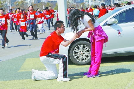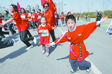 3月27日上午,鄭開國(guó)際馬拉松賽五公里小馬拉松比賽在鄭東新區(qū)舉行,情侶方隊(duì)、親子方隊(duì)等各具特色的參賽隊(duì)伍,給緊張的比賽帶來(lái)了輕松和快樂(lè)。