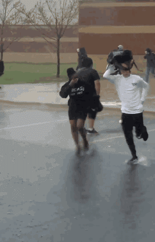當(dāng)暴雨來臨,人們的第一反應(yīng)通常是趕緊躲雨。這個(gè)可憐的孩子如此孤單,一定是在等待某人的出現(xiàn)……”男孩的一名校友打趣道,他可能“只是在測(cè)試防水耳機(jī)”。