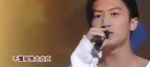 這是他15歲時首次登上舞臺,翻唱Beyond的《真的愛你》,膠原蛋白滿滿,嫩的簡直能掐出水。