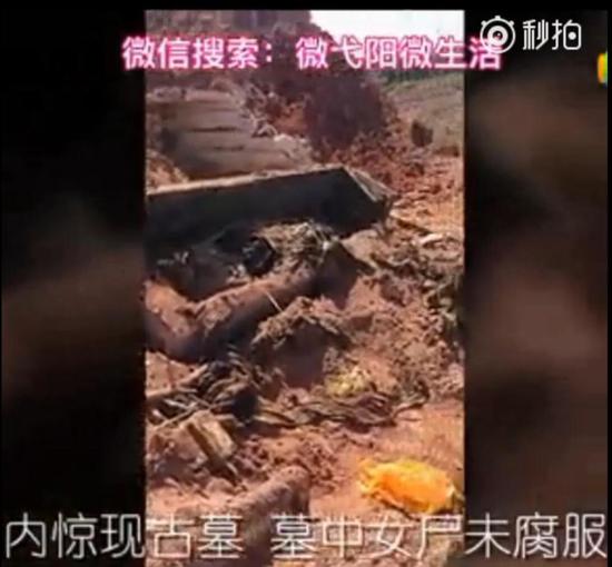 7月28日,在上饒市弋陽縣新看守所建筑工地,挖出一個古墓,現場掘出一口棺材,并發(fā)現一具保存尚為完好、身著疑似名門貴族服飾的女干尸。而在半年多前,2016年11月7日,同樣在江西上饒,上饒縣石獅鄉(xiāng)王家壩白領小組一處施工工地發(fā)現一處古墓。