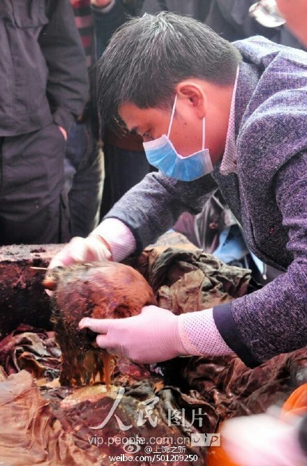 7月28日,在上饒市弋陽縣新看守所建筑工地,挖出一個古墓,現場掘出一口棺材,并發(fā)現一具保存尚為完好、身著疑似名門貴族服飾的女干尸。弋陽縣文物部門人員初步判斷,此是明代中期左右古墓。
