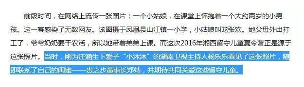 根據(jù)2016年7月一篇來自新浪湖南的文章——《貴之步發(fā)起愛心夏令營(yíng)情暖湘西留守兒童》描述,湖南衛(wèi)視主持人楊樂樂的閨蜜,便是此次被告上法院的貴之步董事長(zhǎng)鄭靖。
