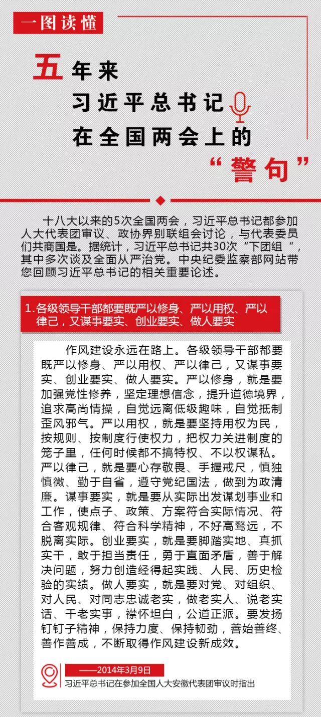 一圖讀懂:五年來習近平總書記在全國兩會上的"警句"