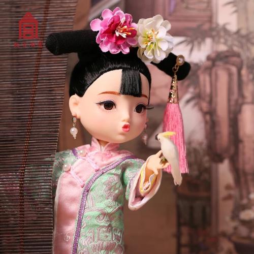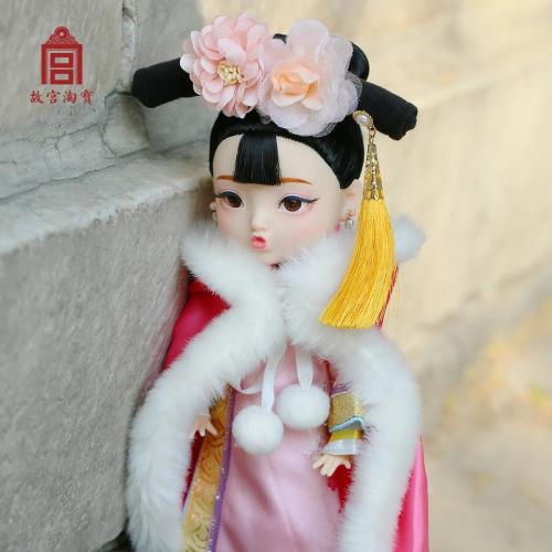 因此,故宮文創(chuàng)根據(jù)中國人的傳統(tǒng)五官印象,設(shè)計(jì)成此款烏發(fā)杏眼,寬額小嘴的中國娃娃。故宮文創(chuàng)方面表示,首次娃娃選擇了清代服飾,并在工藝允許的基礎(chǔ)上努力還原真實(shí)的清朝格格形象,之后還會(huì)陸續(xù)推出不同朝代的格格或公主服飾單品。