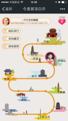 在河南十大名嘴戰(zhàn)隊(duì)中選擇一個(gè)你要支持的戰(zhàn)隊(duì)加入,即可為該戰(zhàn)隊(duì)捐贈當(dāng)天的微信運(yùn)動步數(shù),該戰(zhàn)隊(duì)獲得用戶捐贈步數(shù)后可在規(guī)定的線路中前進(jìn),到達(dá)終點(diǎn)為獲勝。