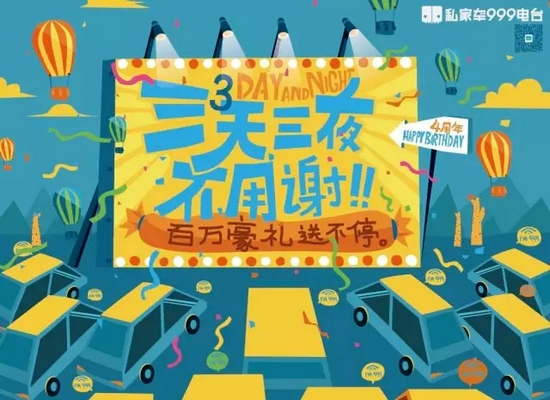 跟大家在一起的快樂說都說不完啊,私家車999四周歲生日將近,咱們再一起玩?zhèn)€大的??!