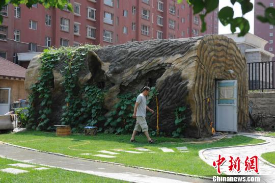 吉林省長春市近來出現(xiàn)一所外形酷似樹墩的公共廁所,引來很多市民的關(guān)注。這座公廁乍一看去像是一尊巨大的樹干,長約十米左右,直徑約四米。張瑤 攝