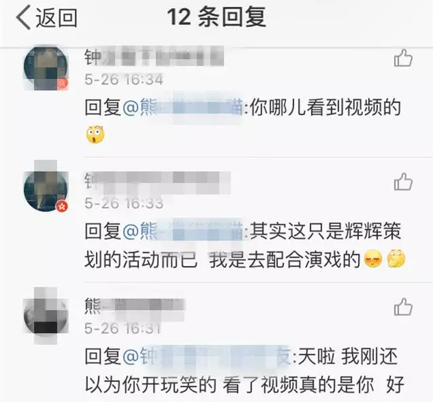 王雪在微博回復中稱“我是去配合演戲的”