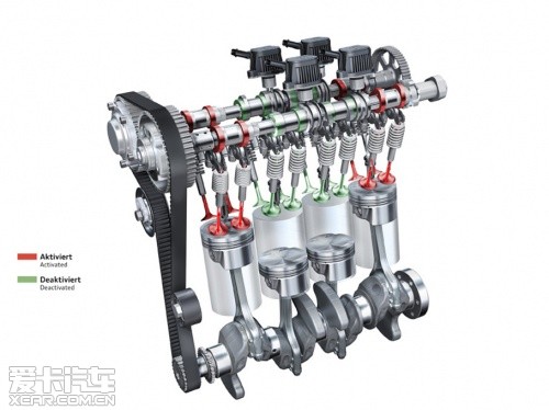 幫助奧迪在原有動力基礎(chǔ)上降低油耗的,主要包括發(fā)動機啟停技術(shù)、能量回收技術(shù)以及全新的全車智能熱管理。除此之外還加入一項行駛中“閉缸”技術(shù):此技術(shù)應(yīng)用在大眾集團全新代號為EA888的直列4缸TFSI發(fā)動機之上, 當(dāng)發(fā)動機正常運轉(zhuǎn)時,只要電控系統(tǒng)監(jiān)測到此時行駛狀態(tài)均勻且需求動力非常低的情況下,就會主動關(guān)閉中間兩個氣缸。具體的做法是通過改變凸輪軸的位置,使正時氣門停止打開,保持關(guān)閉狀態(tài)?;钊匀辉诟變?nèi)往復(fù)運動,但不進行進排氣和點火。通過電腦做到高度的精確同步后,達到減少油耗與排放的效果。由于此項技術(shù)剛剛推出,筆者也僅僅接觸到了1:1等比例模型,具體的技術(shù)細(xì)節(jié)、運行模式與實際效果將在日后的試駕中向大家展示。