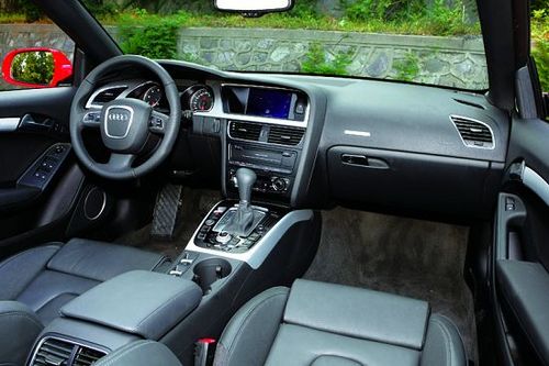 奧迪A5 Cabriolet 2.0T雖然身為一款敞篷跑車,但其內(nèi)飾設(shè)計卻與奧迪轎車的整體風格完全一致。在這個座艙里,我們看不到大面積的金屬裝飾,也找不到刺激駕駛者腎上腺素分泌的夸張設(shè)計。黑色依然是座艙的核心色調(diào),各種豪華配置告訴我們——這并不是一款過分追求動態(tài)性能的車,舒適才是它的首要任務(wù)。駕駛臺上,MMI多媒體互動系統(tǒng)依舊是所有座艙系統(tǒng)的核心。與上一代系統(tǒng)相比,新一代MMI多媒體交互系統(tǒng)的改進包括3個方面:第1,硬盤驅(qū)動的導航系統(tǒng)功能更加強大;第2,屏幕顯示和圖像處理能力均有提升;第3,操作按鍵的設(shè)計更加人性化,便于用戶靈活自如地使用各項功能。
