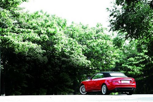 雖然對奧迪A5 Cabriolet 2.0T已經(jīng)非常熟悉,但在走到它身邊的時候還是興奮不已。毋庸置疑,火紅色的奧迪A5 Cabriolet 2.0T實在是太美了,低矮的車身極具運動韻味,黑色的折疊軟頂在紅色車身的映襯下非常搶眼。最令人欣喜的是,奧迪A5 Cabriolet 2.0T的前風擋外框采用了亮銀色涂裝,并延伸至駕駛艙周身,構(gòu)成了一個完整的裝飾圈,起到了畫龍點睛的作用。