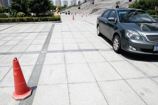 記者坐在駕駛位置,車輛左前保險(xiǎn)杠與左前車輪夾角處,是視覺盲區(qū);即使將車座調(diào)至最高位置,如果物體低于車前引擎蓋高度,仍然無法發(fā)現(xiàn)障礙物。