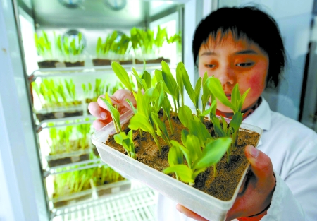 3月27日,浚縣種子站工作人員在查看光照培養(yǎng)箱里培養(yǎng)的種苗。近年來,??h實施“科技興糧”戰(zhàn)略,糧食生產(chǎn)連年獲得豐收。目前,??h100多萬畝小麥長勢良好。 新華社發(fā)