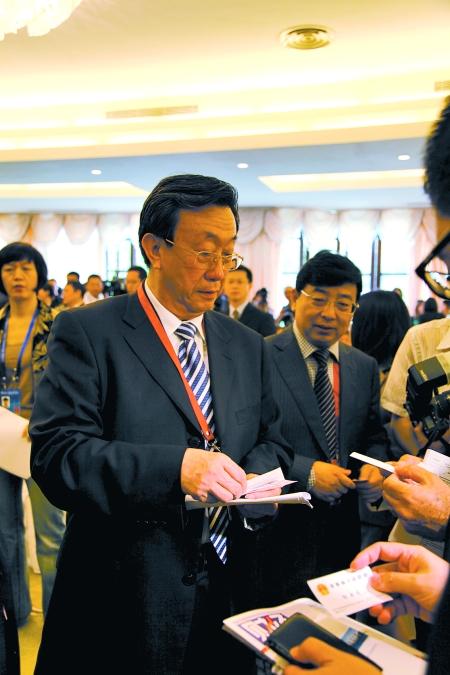 論壇開始前,郭庚茂一走進(jìn)會場,就被眼尖的代表們認(rèn)出,不斷有人主動去交換名片。論壇剛一結(jié)束,臺上嘉賓和臺下聽眾“呼啦”一下都擁到郭庚茂身邊,有的要名片,有的要合影,有的要預(yù)約采訪。郭庚茂微笑著一一滿足大家的要求。