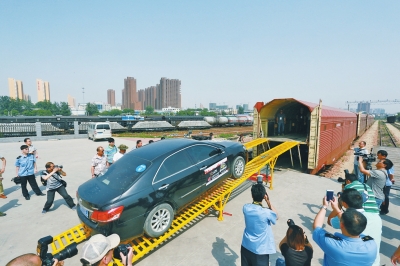 昨日14時(shí),鄭州北站內(nèi),首次迎來(lái)一批特殊的貨品——私家車(chē)。各式各樣的小轎車(chē)、SUV被裝上火車(chē),與它們的主人暫時(shí)分離,直奔目的地重慶。