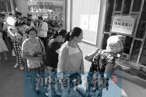 當(dāng)天下午4點(diǎn)多,位于鄭州市醫(yī)學(xué)院立交橋北引橋下的公交卡充值點(diǎn)前人頭攢動(dòng),等候辦理業(yè)務(wù)的隊(duì)伍從窗口一直排到了馬路上?!皯?yīng)該多開(kāi)幾個(gè)窗口?!蓖跸壬谂帕?0多分鐘隊(duì)后抱怨道。