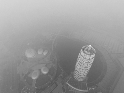 昨日(12月18日)中午,記者利用無人機爬升到最高升限500米仍舊沒能突破霧霾層,鏡頭中的“大玉米”籠罩在一片混沌當(dāng)中。