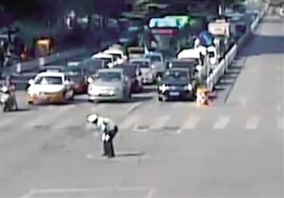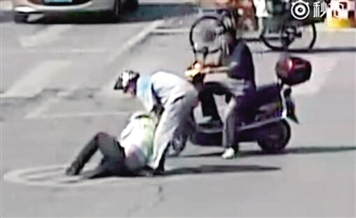 騎電動車經過的兩名男子見狀,立刻上前將王宏釗攙扶起來,緊接著又有幾位市民趕到。一名穿著紅色上衣的男子將王宏釗扛在肩頭,一位女士給王宏釗打傘遮陽,眾人一起把王宏釗轉移到路邊。聞訊趕來的其他交警在這個路口補位,繼續(xù)指揮交通。