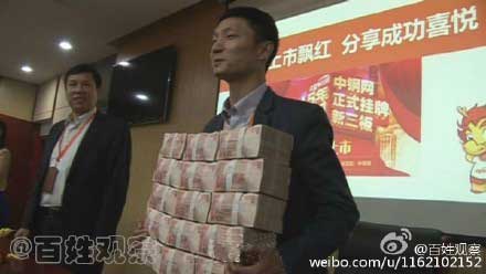 4、、土豪老板發(fā)現(xiàn)金 員工用麻袋扛錢