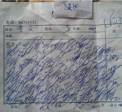 @陸心遠(yuǎn):其實(shí)醫(yī)生寫病例單開(kāi)藥單在過(guò)去是有規(guī)定的,防止藥方外泄,故寫的比較草,還有醫(yī)生貌似以前用的都是拉丁文吧,這不是最神奇的,而是抓藥的居然都認(rèn)識(shí)醫(yī)生的字,這最恐怖!