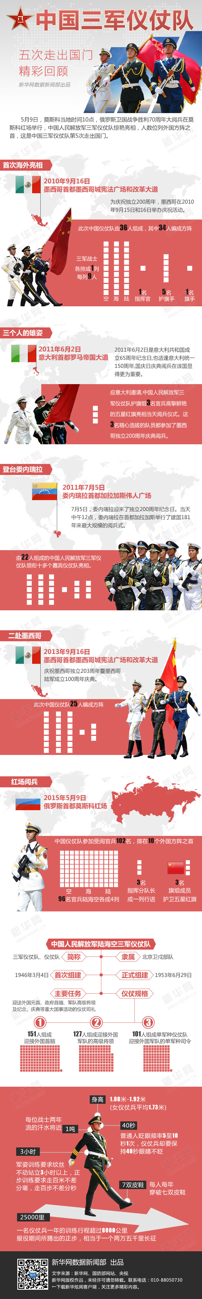 5月9日,莫斯科當(dāng)?shù)貢r間10點,俄羅斯衛(wèi)國戰(zhàn)爭勝利70周年大閱兵在莫斯科紅場舉行,中國人民解放軍三軍儀仗隊驚艷亮相,這是中國三軍儀仗隊第5次走出國門。