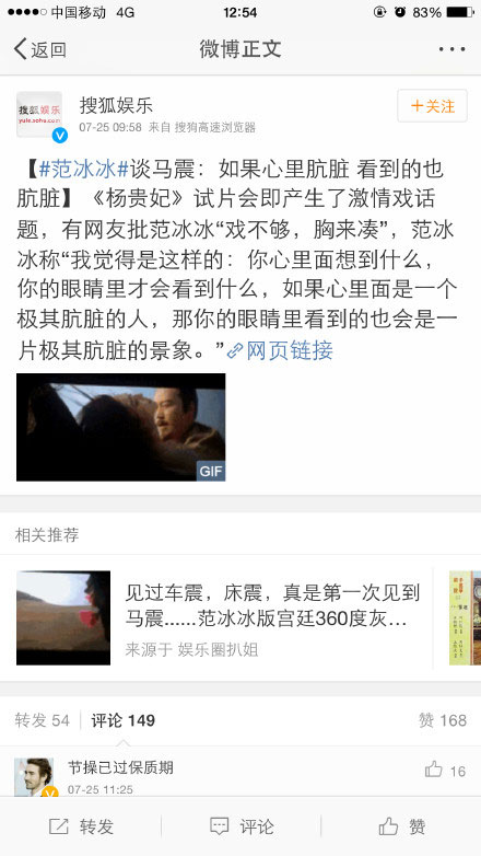 10、范冰冰回應(yīng)馬震:內(nèi)心骯臟,眼睛里看見(jiàn)的也是骯臟