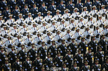 中國閱兵史上的首次設(shè)置合唱團(tuán),一千多名隊(duì)員全部由總裝、海軍、空軍所屬院校的學(xué)員組成,為網(wǎng)友們奉獻(xiàn)了“最霸氣的現(xiàn)場演唱會”。