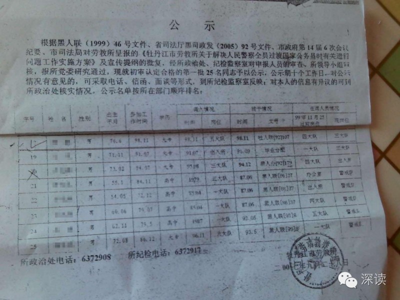 日前,有多名黑龍江省牡丹江市強(qiáng)制戒毒所(原勞教所)在職及退休干警通過爆料平臺(tái)向深讀爆料稱,該單位原副所長為了能讓兒子進(jìn)入勞教所工作,通過虛構(gòu)出生年月的手段造假,使其兒子順利進(jìn)入勞教所工作,并在入黨后被提拔成為單位的中層干部。