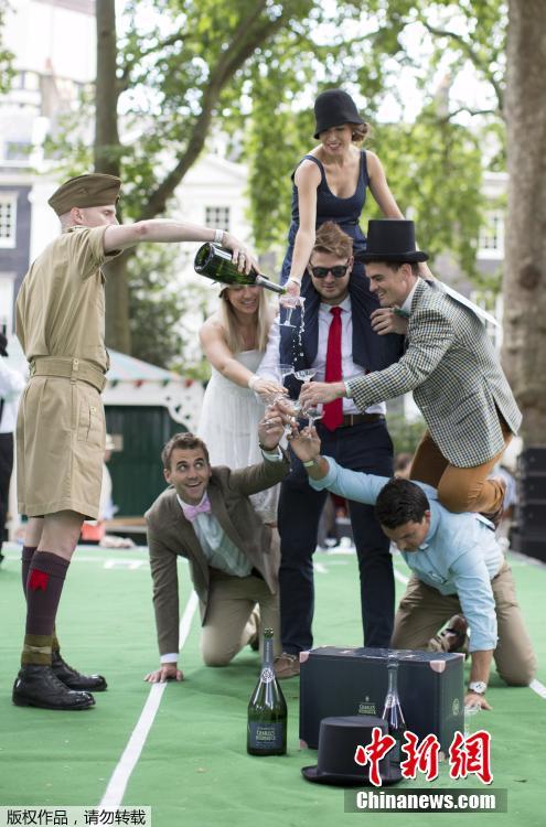 當(dāng)?shù)貢r間2015年7月11日,英國倫敦,貝德福德廣場花園舉辦一年一度的“紳士運動會”。這是一個不以打破記錄為榮,而專為紳士打扮裝帥??岫O(shè)的趣味運動會,比賽項目包括“雨傘騎(車)斗”、“燙衣板沖浪”、“背人賽跑”等,現(xiàn)場參加者不一定會出汗出力,但一定要打扮成傳統(tǒng)紳士淑女風(fēng)格,而叼煙、小酌一杯的鏡頭更讓人覺得這是一場嘉年華。