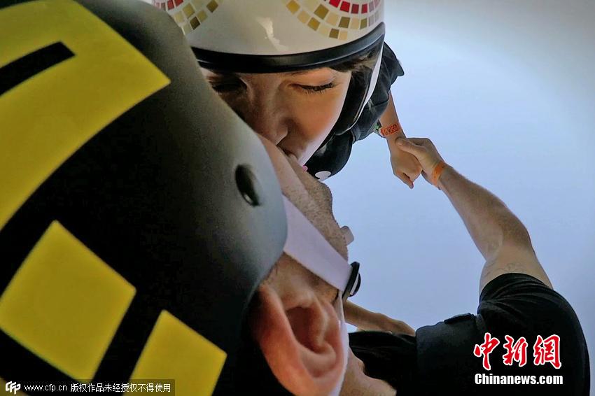羅伯塔·曼奇諾和諾亞·巴恩森都是知名跳傘運(yùn)動(dòng)員,他們跳傘時(shí)在高空中的親吻簡(jiǎn)直可以稱為“世界最瘋狂之吻”。 圖片來(lái)源:CFP視覺中國(guó)