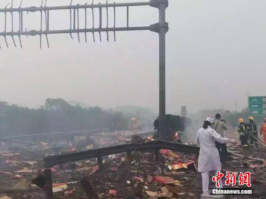 據(jù)江西省高速部門10月30日消息,當(dāng)日15:20左右,距離滬昆高速公路分宜互通2公里處發(fā)生油罐車爆炸事件,爆炸導(dǎo)致分宜收費(fèi)站內(nèi)辦公樓和宿舍大面積玻璃碎裂?,F(xiàn)場圖片顯示,有大量煙花爆竹燃燒痕跡。目前,江西省高速、交警、醫(yī)護(hù)、消防等相關(guān)部門已在現(xiàn)場。事故情況正在進(jìn)一步核實(shí)中,傷亡情況未知。(李琴 攝)