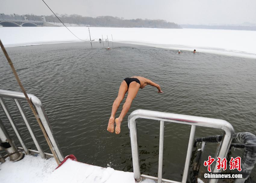 12月2日,長春市民在南湖公園冬泳。一場入冬以來最大規(guī)模的降雪過后,長春市氣溫已達(dá)零下15攝氏度,但對于冬泳愛好者來說,這恰是他們享受冬季快樂的開始。 張瑤 攝