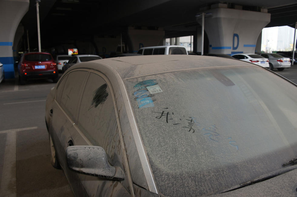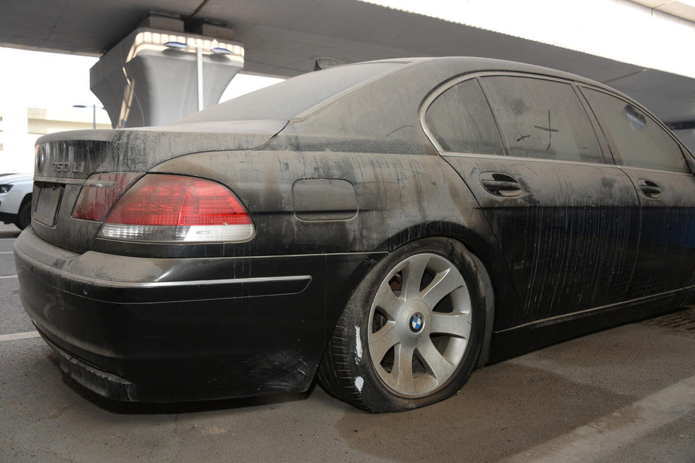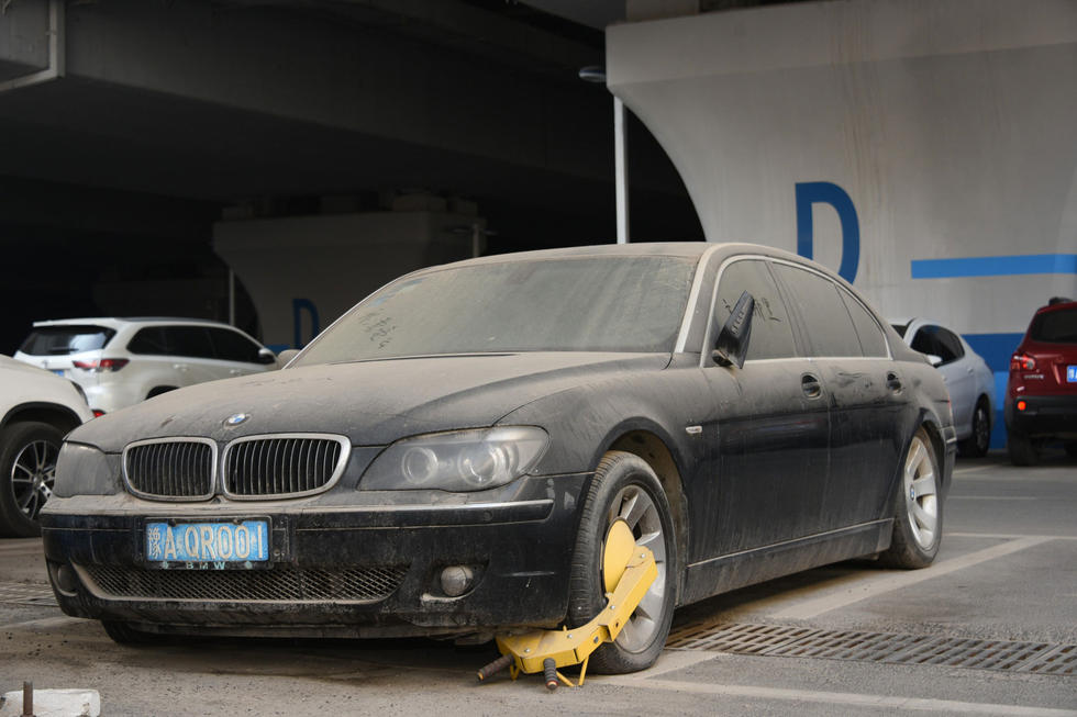 上午7時(shí)30分,中興路附近的高鐵站北區(qū)停車場(chǎng),在入口處東側(cè),這輛“蓬頭垢面”的寶馬車車全身落滿了塵土,已呈灰色。其實(shí),這是一輛價(jià)值過(guò)百萬(wàn)的黑色寶馬750LI。該車的右前后輪已經(jīng)癟了,左前輪被上了鎖。在車后備箱左側(cè)上方有一處凹陷,但不太明顯。后引擎蓋上被人寫上“下雨了”字樣。車的縫隙處堆積著厚厚的塵土,顯然,這輛寶馬車已經(jīng)在此停放已經(jīng)有很長(zhǎng)時(shí)間了。