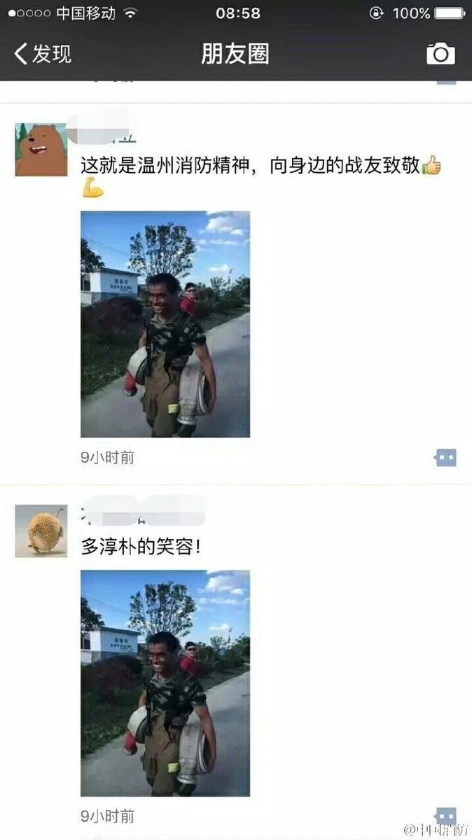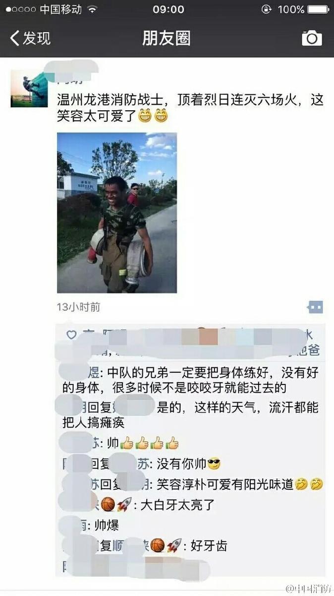 這是溫州龍港消防戰(zhàn)士成功處置6起火災(zāi)凱旋后,被抓拍到的一張照片,照片中樸實(shí)的笑容,最美的笑容,也是最美的瞬間。