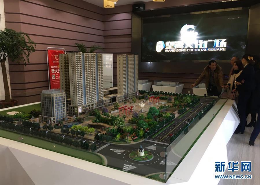 12月8日用手機(jī)拍攝的河南汝州望嵩文化廣場沙盤,沙盤左側(cè)是購物廣場和住宅樓,市民正在詢價。 新華社記者 馮大鵬 攝 圖片來源:新華網(wǎng)
