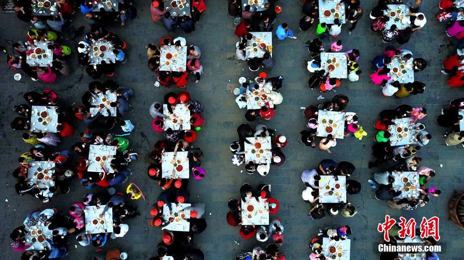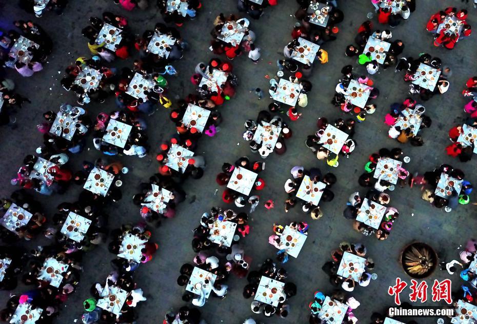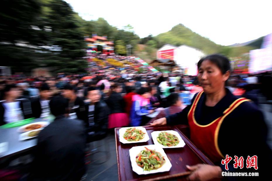4月22日晚,河南欒川雞冠洞高山牡丹節(jié)開幕,特地舉辦千人牡丹宴,當?shù)氐奶厣珯璐ǘ垢?、樹芽菜以及主菜牡丹燕菜紛紛上桌,吸引上千民眾品嘗,場面壯觀。 中新社記者 王中舉 攝