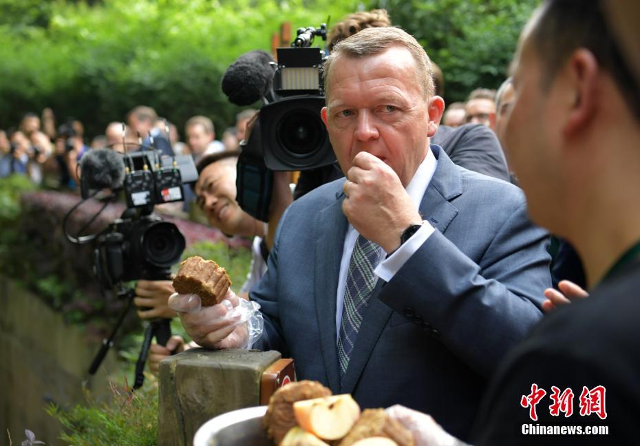 5月2日,丹麥?zhǔn)紫嗬鼓律勾笮茇埑蕴O果。當(dāng)日,應(yīng)中國國務(wù)院總理李克強邀請,丹麥?zhǔn)紫嗬鼓律D行抵達(dá)中國成都,開始對中國進(jìn)行正式訪問,拉斯穆森此訪系其2015年當(dāng)選首相以來首次訪華,其訪問首站就來到四川成都。中新社記者 劉忠俊 攝