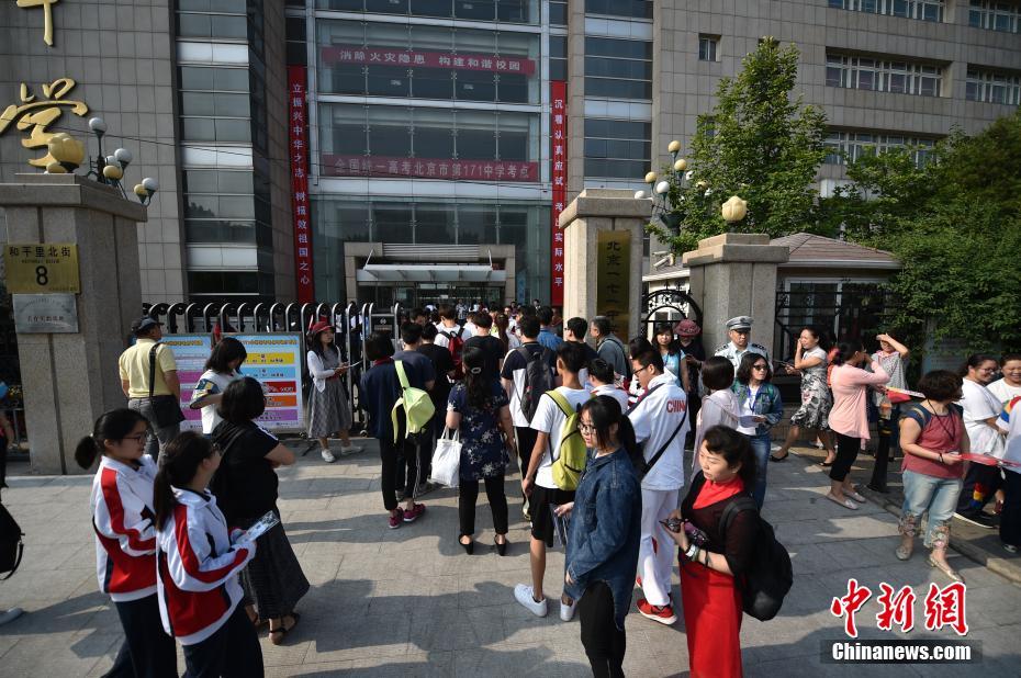 6月7日,2017年高考大幕正式拉開,全國將有940萬考生參加考試。今年可謂是高考歷史上的特殊年份,一方面,今年是高考恢復40周年,另一方面,今年也被稱為“新高考元年”,高考綜合改革試點地區(qū)的考生將迎來首次“新高考”。圖為北京市171中學考點的考生陸續(xù)進入考場。中新網記者 金碩 攝