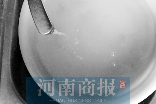 進(jìn)入一居民家后,居民迫不及待地打開(kāi)水龍頭。河南商報(bào)記者看到,剛從水龍頭里接出來(lái)的水確實(shí)像面湯一樣白稠,放置半分鐘后,水開(kāi)始變清,再過(guò)一段時(shí)間,接水盆盆底開(kāi)始顯現(xiàn)出一層紅色的沙子。