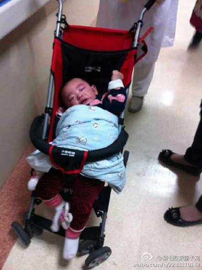 10月15日晚7點(diǎn)30分左右,一名女子將16個(gè)月大的女嬰遺棄在上海市第一人民醫(yī)院兒科門診大廳。 新浪微博@翻毛腔額童子雞 圖
